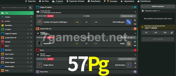 A aposta 57Pg oferece aos jogadores a experiência mais conveniente de apostas em eSports!